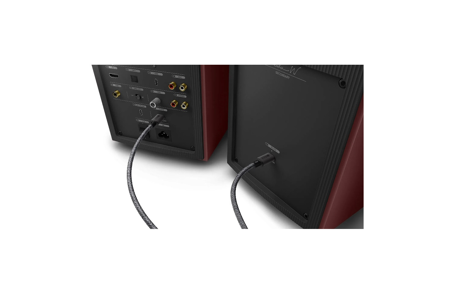 Se incluye un cable entre altavoces de 3 metros de serie. Para salas más grandes y distribuciones personalizadas, el cable entre altavoces C-Link opcional de 8 metros ofrece la máxima flexibilidad. Combínalo con los soportes de suelo SQ1 opcionales para una altura y una posición de escucha óptimas.