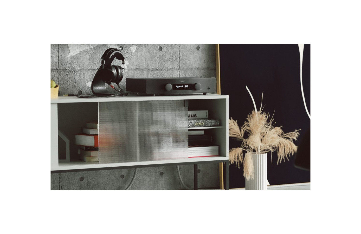 También hay una salida de auriculares de alta calidad, una salida previa variable para conectar un subwoofer u otro equipo, y una elegante pantalla OLED informativa.