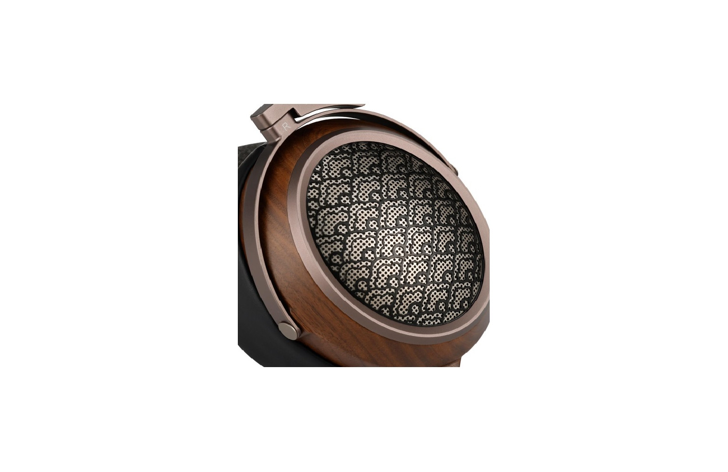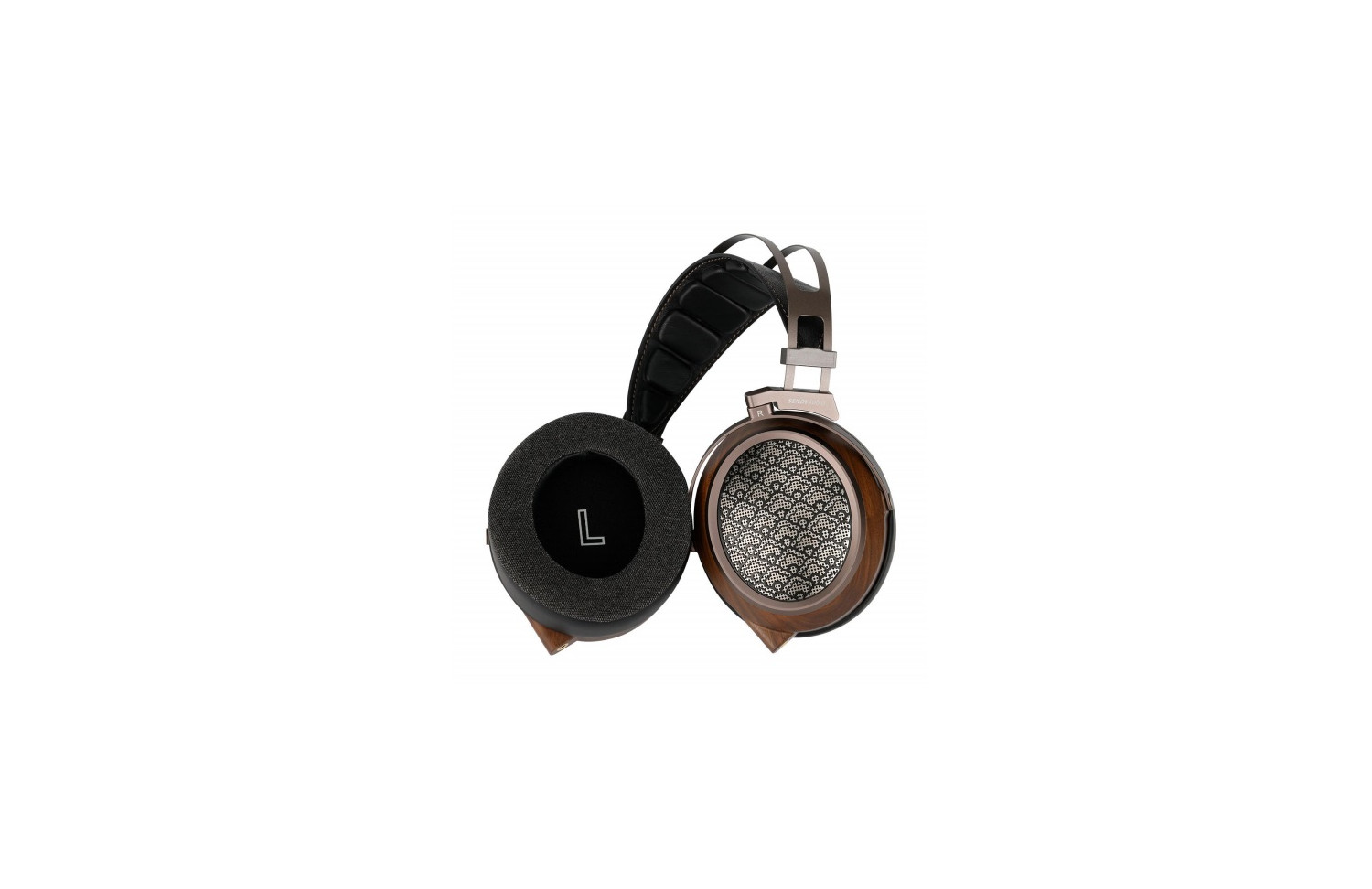 El patrón de malla se inspira en las alas de una garza negra en vuelo. Su diseño finamente entrelazado recuerda a delicadas plumas desplegándose con la luz, aportando elegancia visual y transparencia acústica.