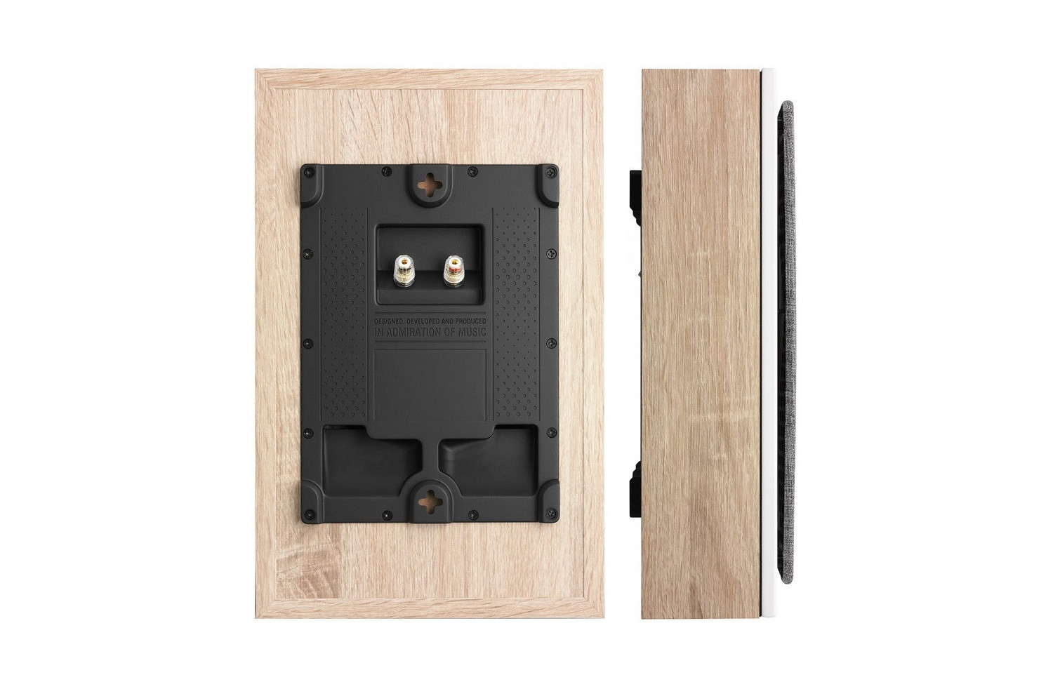 La gama Oberon cuenta con una carcasa de paneles de MDF mecanizados acabados en vinilo de alta calidad. La estructura de vigas internas le aporta solidez, reduciendo las resonancias internas en su práctica totalidad. El interior de la carcasa está recubierto con aislante amortiguador en todos los lados salvo en el del bafle frontal para lograr un contacto más directo entre el woofer y el puerto trasero para obtener unos graves más precisos y un ataque mejorado al rango medio. Oberon también incluye un diseño de grill frontal completamente nuevo. Los nuevos grills redondeados añaden una estética más visual y contemporánea a la gama. Mountain Grey es el acabado de grill estándar para los acabados claros, y Shadow Black el de los acabados oscuros. También están disponibles, bajo demanda, en tonos Marshmallow White y Traditional Black.