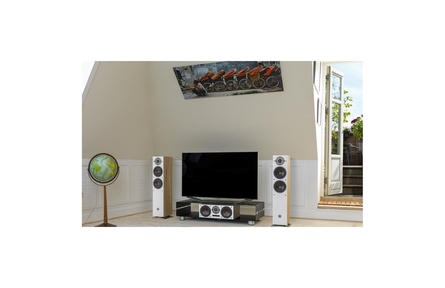 Dali permite integrar con facilidad los altavoces en cualquier sala. Tanto los materiales del driver como la geometría aplicada para el diseño de la gama Oberon han sido seleccionados para lograr un patrón de amplia dispersión en el área de escucha. Los mismos principios que se han aplicado en el diseño del crossover. Un beneficio añadido es una notable reducción de la distorsión harmónica y difracciones que afectan a la distorsión de frecuencias, ya que estas siempre serán más fuertes en una repuesta en el eje. Esta es también la razón por la que todos los altavoces Dali están diseñados para no necesitar puntas de desacople.