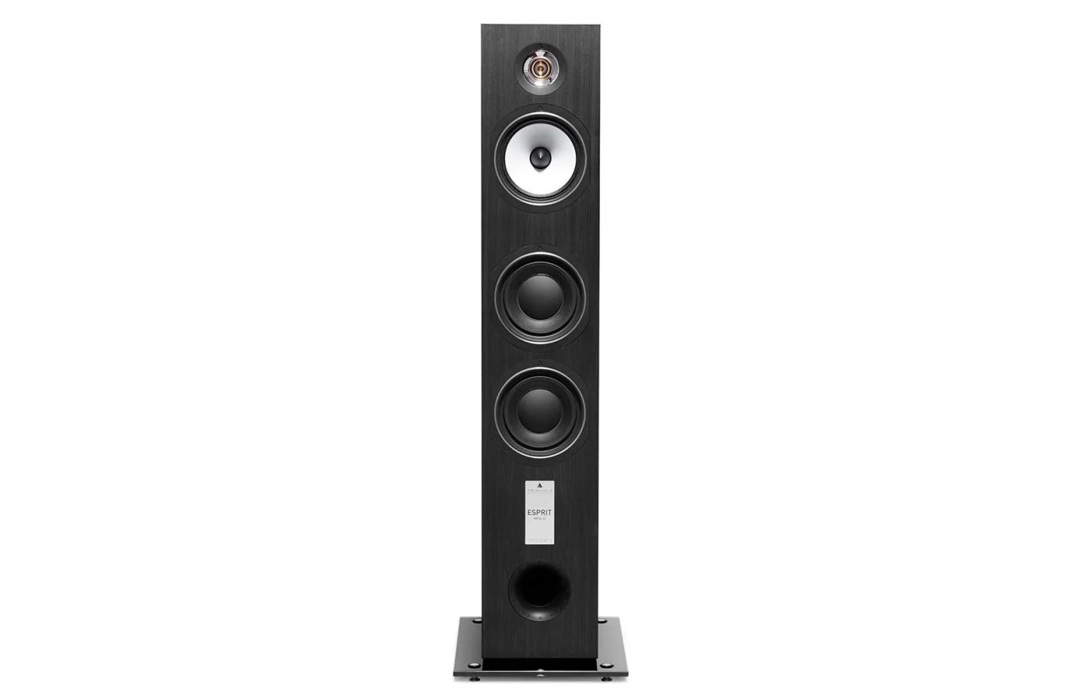 El Esprit Antal Ez viene con un elegante soporte de vidrio termo-moldeado y un conjunto de puntas de goma y aluminio ajustables según la naturaleza del suelo. Seducirá a todos aquellos que busquen un altavoz moderno y vivo que integre las principales tecnologías Triangle para una sala de 20 a 50 m2.