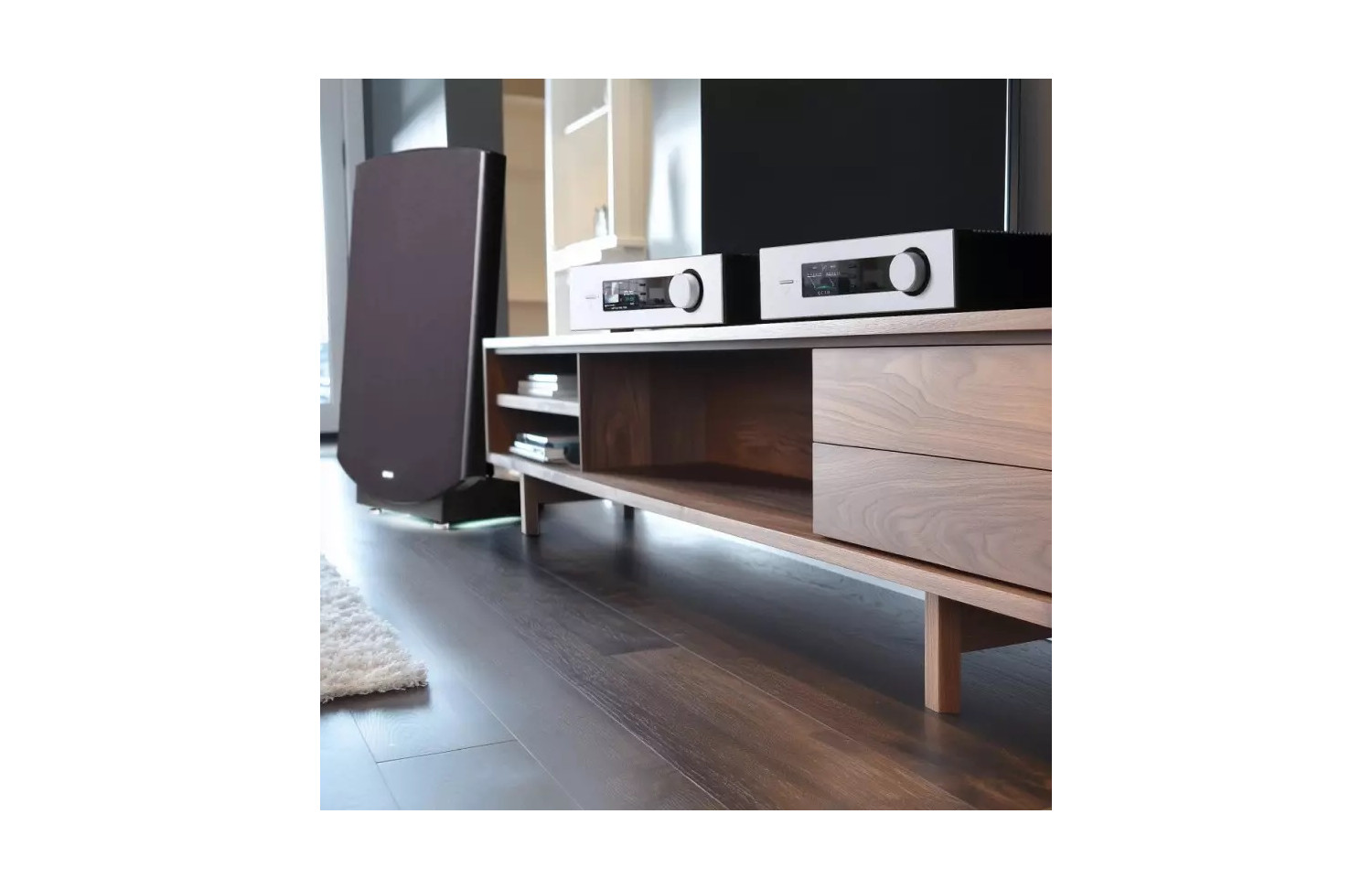 El amplificador mantiene un entorno de funcionamiento estable bajo todas las cargas, conservando la musicalidad incluso a altos niveles de volumen. La geometría interna optimizada garantiza una simetría eléctrica perfecta y una interferencia electromagnética mínima, lo que permite lograr una claridad y una precisión del escenario sonoro sin igual. El resultado es un amplificador transparente pero con cuerpo, igualmente adecuado para la transmisión digital, la reproducción de vinilos o las experiencias cinematográficas inmersivas.