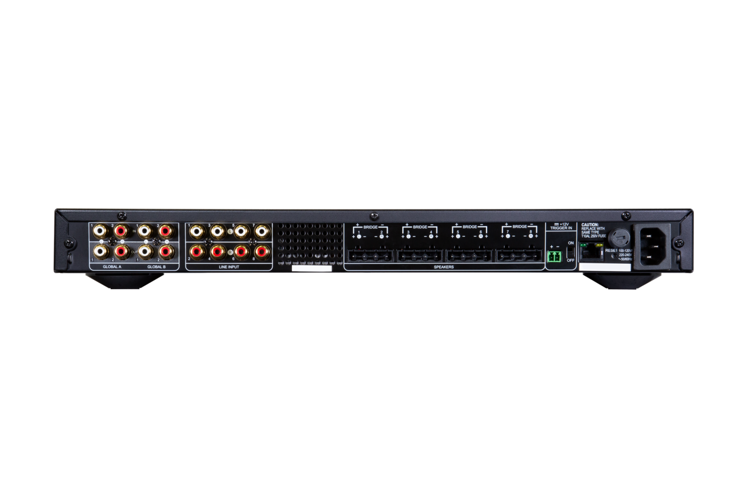 Gracias a su conexión de red, los integradores pueden configurar y monitorizar el amplificador desde la interfaz web, con acceso a ajustes DSP, niveles de entrada, temperatura y estado operativo. Ofrece una gestión flexible y profesional, ideal para instalaciones residenciales o comerciales de alto nivel.