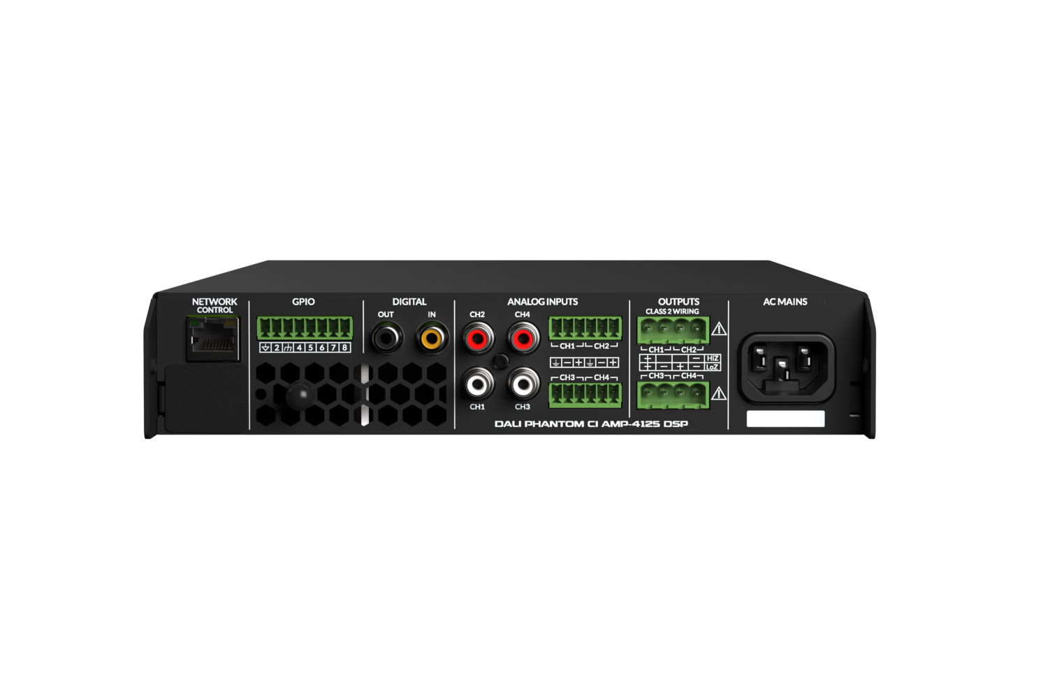 El DALI PHANTOM CI AMP-4125 DSP es un amplificador compacto de cuatro canales desarrollado para instalaciones personalizadas que utilizan altavoces empotrables DALI CI de pared y techo. Integra amplificación Class-D de alta eficiencia, procesamiento DSP avanzado y presets específicos de altavoz, lo que permite una configuración rápida y un rendimiento sonoro uniforme tanto en entornos residenciales como comerciales.