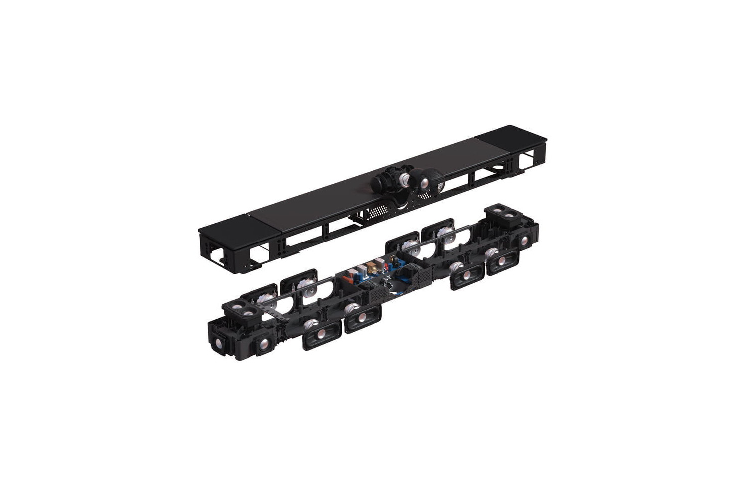 - La tecnología ORB para el canal central le permite adaptarse mecánica y acústicamente a la posición de la barra de sonido, ya sea montada en la pared o colocada sobre un mueble.