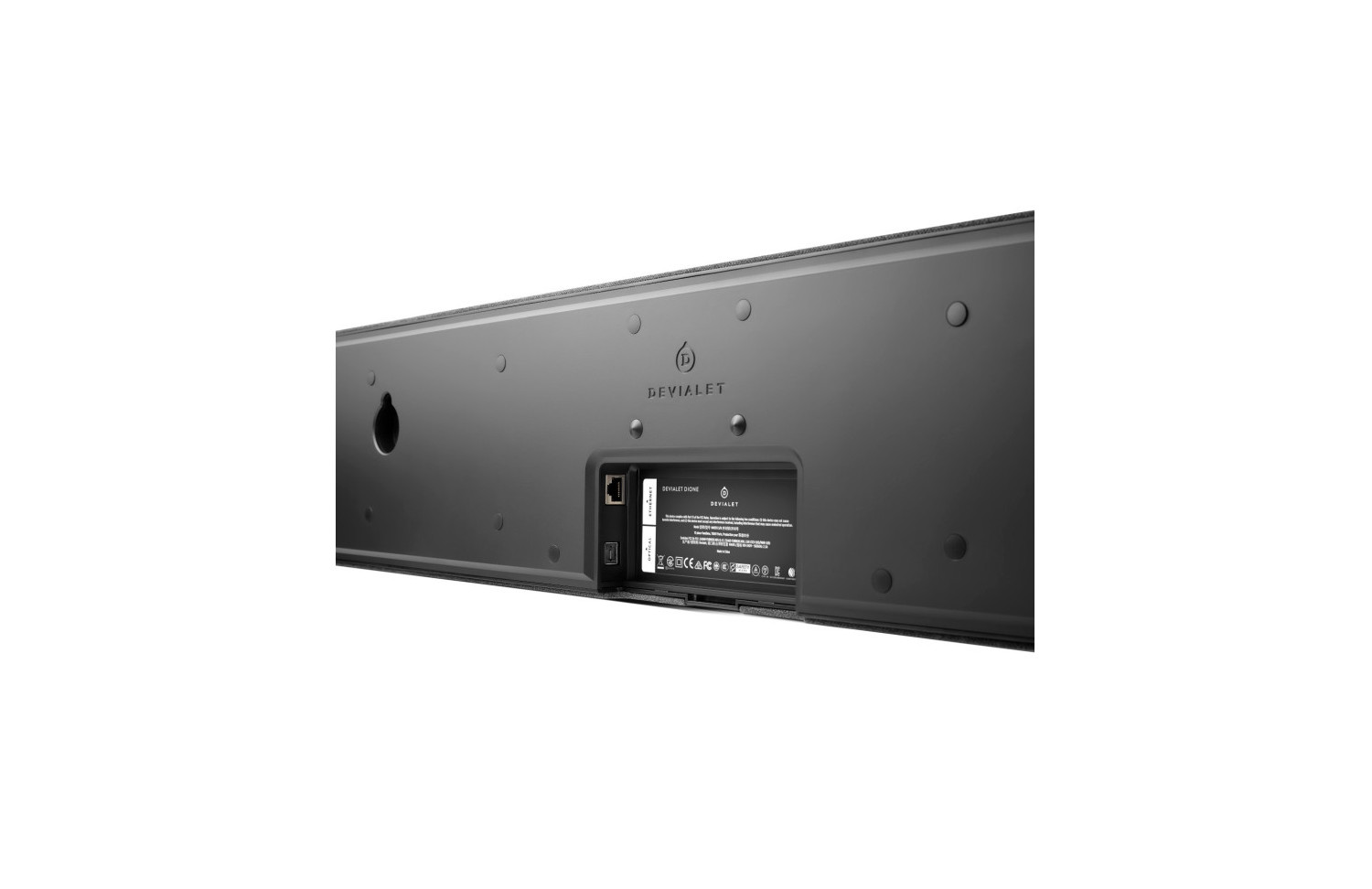 ¿Subwoofer externo? No es necesario agregar lo que ya está integrado. La barra de sonido Devialet Dione cuenta con ocho subwoofers internos, los más altos del mercado, lo que la convierte en un verdadero sistema de sonido todo en uno. Los subwoofers de alta excursión Devialet Dione 8x están diseñados a medida para ofrecer efectos de baja frecuencia potentes y profundos con directividad de onda de sonido mejorada para mejorar en gran medida la restitución e inmersión de graves.