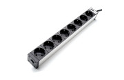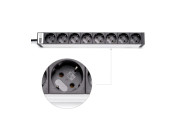 - Enchufes Schuko en disposición de 45°, espaciados generosamente para fuentes de alimentación voluminosas y conectores shucko macho en ángulo.
