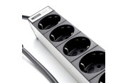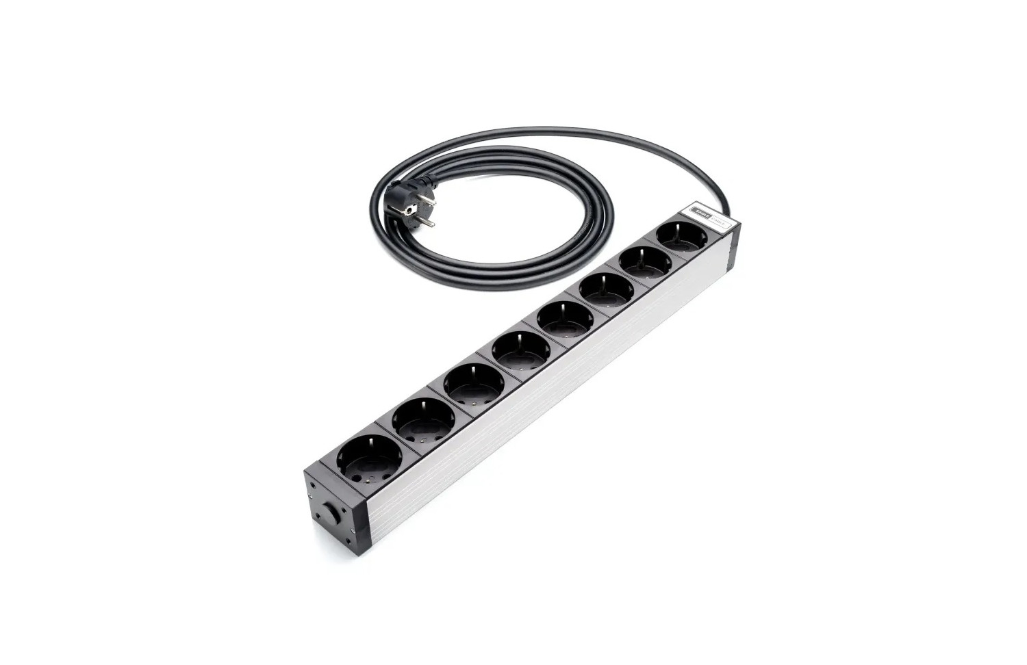 El cable de alimentación de 2 metros (H07RN-F3Gx1,5 mm²) garantiza un suministro de energía fiable incluso con carga continua. El enchufe Schuko con certificación VDE (CEE7/III) garantiza una conexión a la red eléctrica segura y conforme a las normas. Con una tensión nominal de 16 A y 250 V CA, la regleta admite una carga máxima de 3680 W, ideal incluso para sistemas multicomponente con alta demanda de potencia.