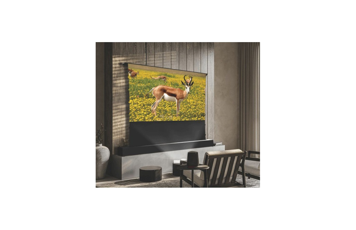 El mando a distancia inalámbrico permite desplegar la pantalla con solo tocar un botón, así como recogerla, mientras la placa superior logra una suave transición en el proceso de apertura y cierre.
