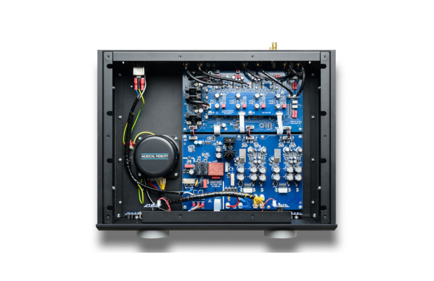 Con un estética más delgada que la de su hermano mayor, gracias a una inteligente reordenación de su organización interna que le ha permitido reducir su volumen global en un 45%, el nuevo previo de fono de Musical Fidelity comparte con aquél elementos tan significativos como una arquitectura completamente balanceada de muy bajo ruido ejecutada con componentes discretos de grado audiófilo, una circuitería de ganancia formada por tres etapas excitadas por circuitos transistorizados configurados en Clase A, ecualización pasiva RIAA, Decca y Columbia en dos secciones separadas, un subsistema de alimentación independiente protagonizado por uno de los reputados transformadores Super Silent de la compañía británica y, por supuesto, las exclusivas válvulas de vacío en miniatura Nuvistor.