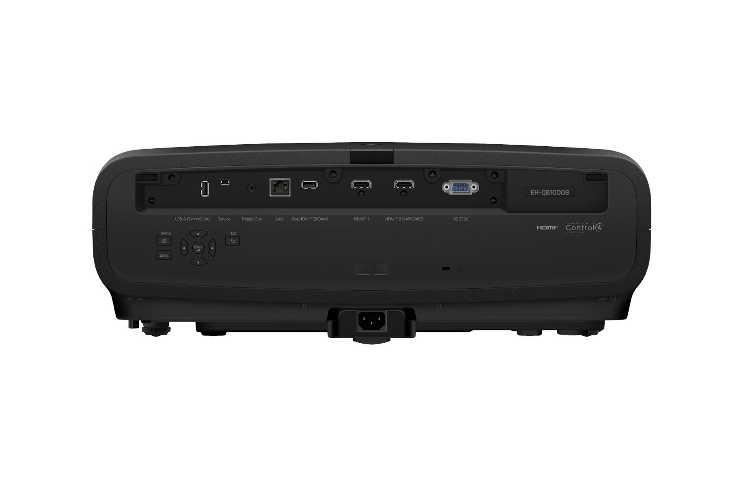 Equipado con un láser 3LCD, el EH-QB1000 ofrece imágenes brillantes con hasta 3300 lumens, pudiendo llenar de luz, pantallas de hasta 300” con resolución de imagen a 4K/120Hz (3840 × 2160).