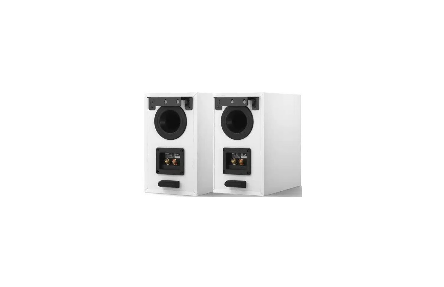 El robusto soporte se atornilla directamente en la parte posterior del altavoz, lo que permite un montaje casi empotrado contra la pared.