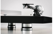 - Brazo de aluminio y fibra de carbono de una sola pieza construido por Pro-Ject.