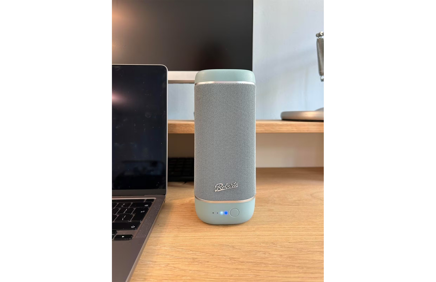 A portable and powerful speakerphone with Bluetooth 5.0 and 360° audio. It plays music wirelessly directly from your phone with crystal clear sound, includes a microphone for calls, and offers IPX7 water resistance.