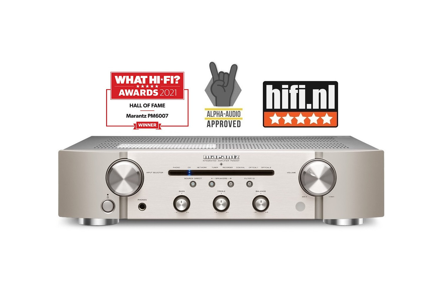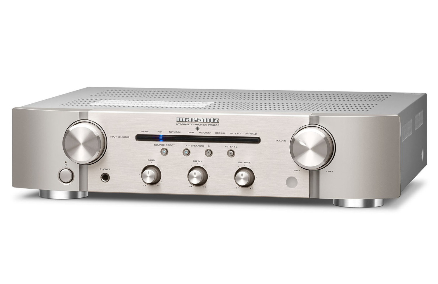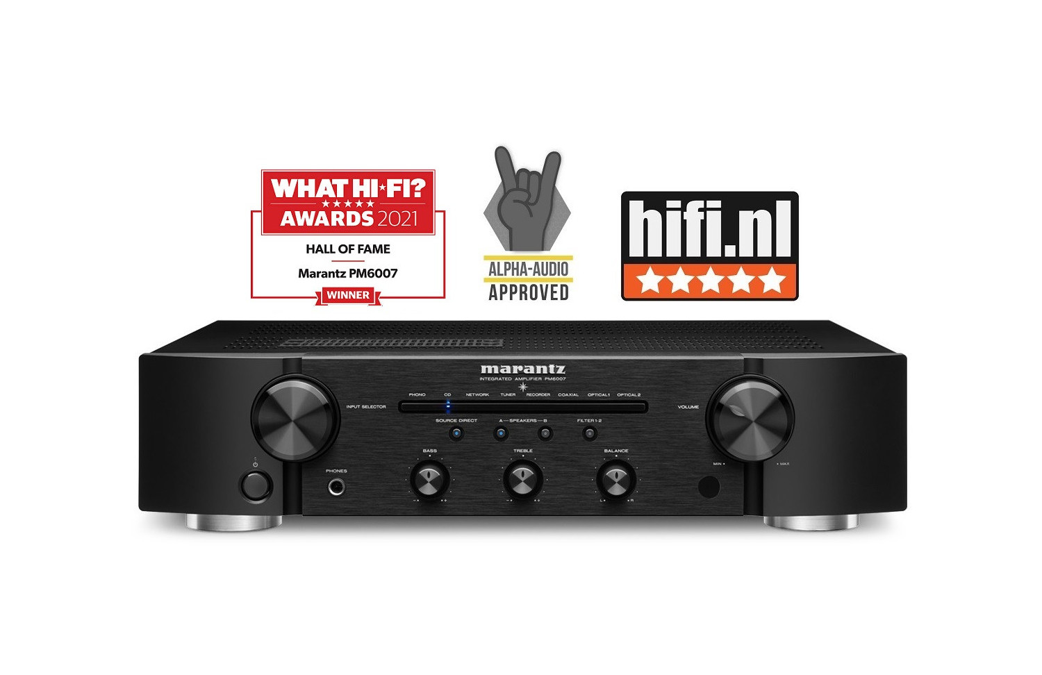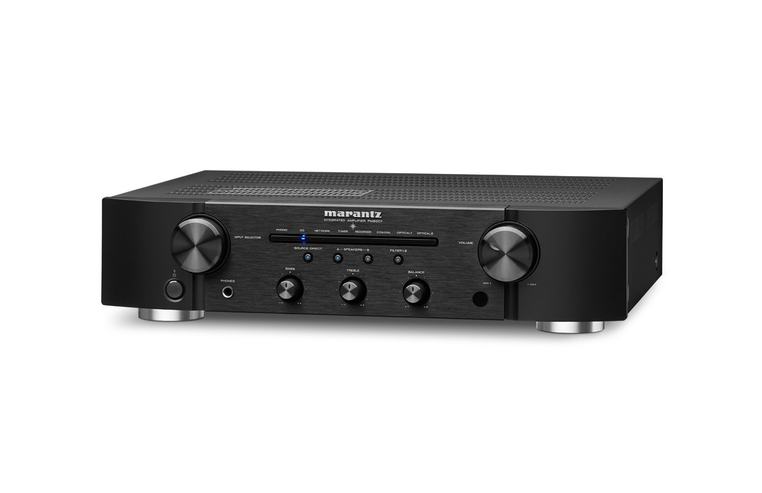 The PM6007 is a 2-channel integrated amplifier capable of maximising the musicality of both analogue and digital sources. Executed with rigorously selected components and equipped with a high current power supply combining a refined toroidal transformer with large capacitors, the PM6007 delivers 45 watts continuous per channel into 8 ohms. Designed by a team drawing on over 65 years of Hi-Fi experience, the PM6007 incorporates a current feedback circuit topology with HDAM-SA3 modules from Marantz that enables it to provide very high passband and dynamic range, thus preserving the depth of sound and detail contained in each recording.