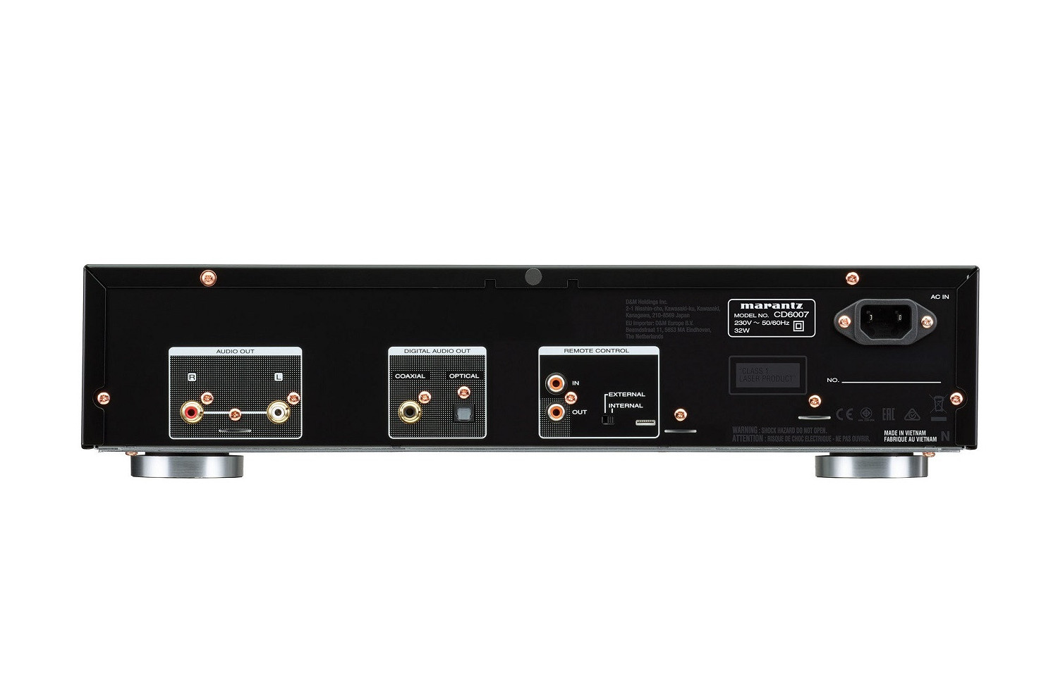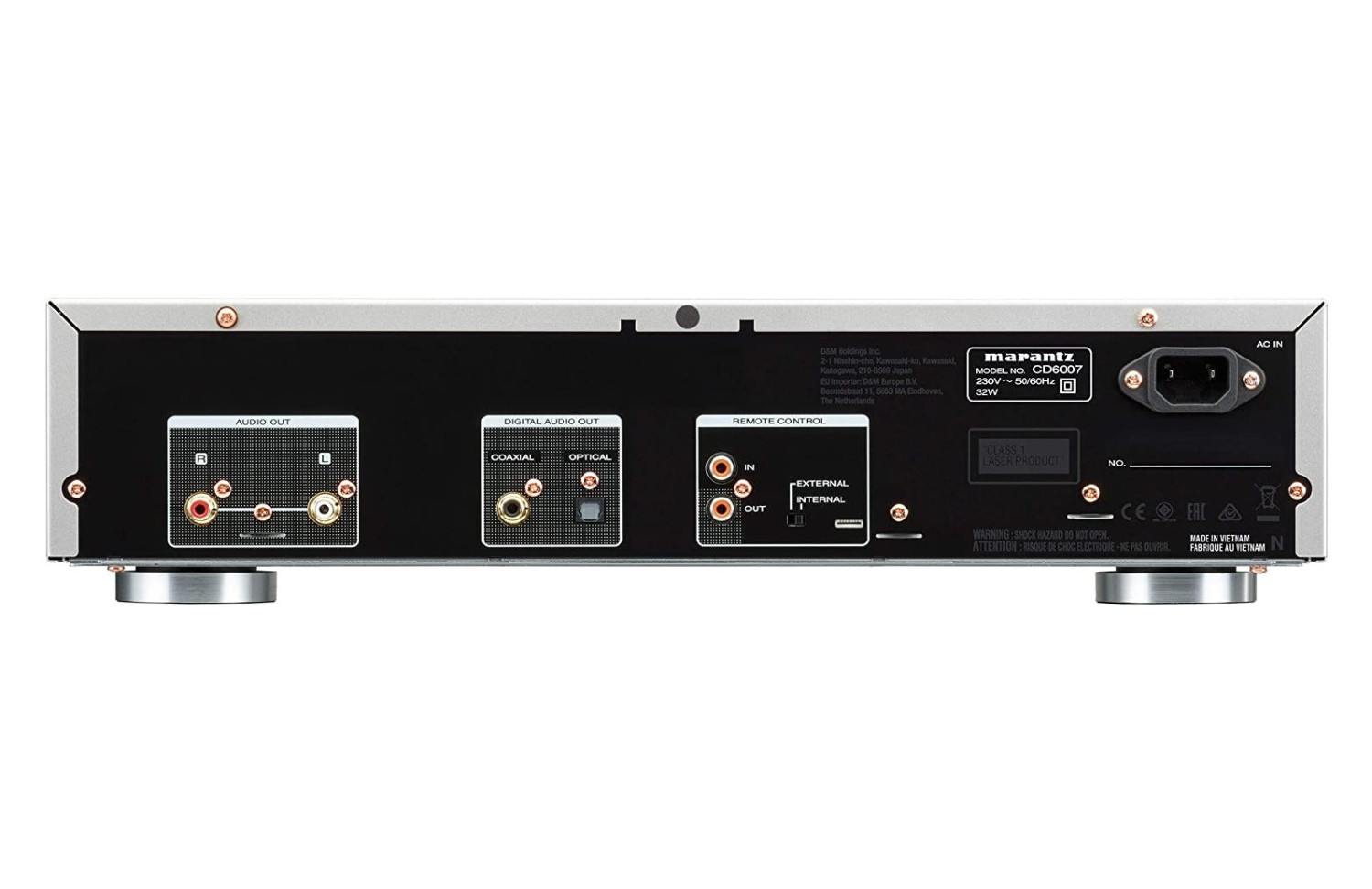The CD6007's analogue signal component is processed by one of Marantz 's unique HDAM-SA2 modules and routed to the gold-plated RCA output connectors on the rear panel. The CD6007 also includes a headphone amplifier with independent gain adjustment to facilitate compatibility with a wide repertoire of headphones. In terms of mechanical construction, it features a double-layer bottom plate and high-rigidity feet that prevent unwanted vibrations from reaching the high-precision mechanisms inside the unit.