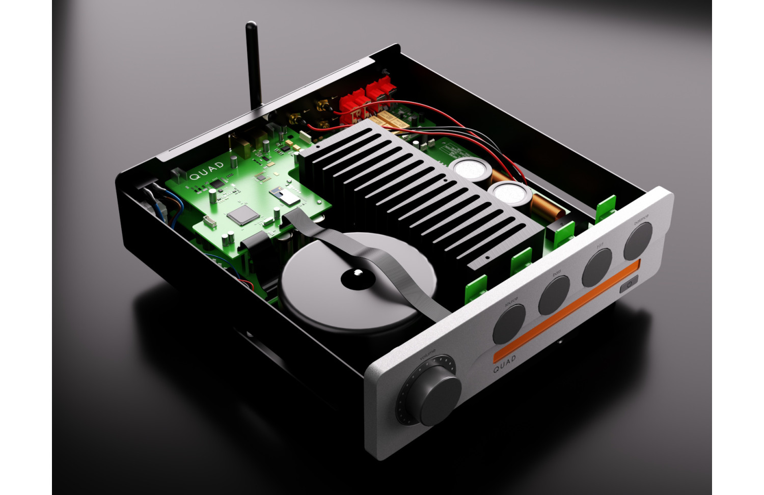 - Aesthetics inspired by the QUAD 22 preamplifier.
