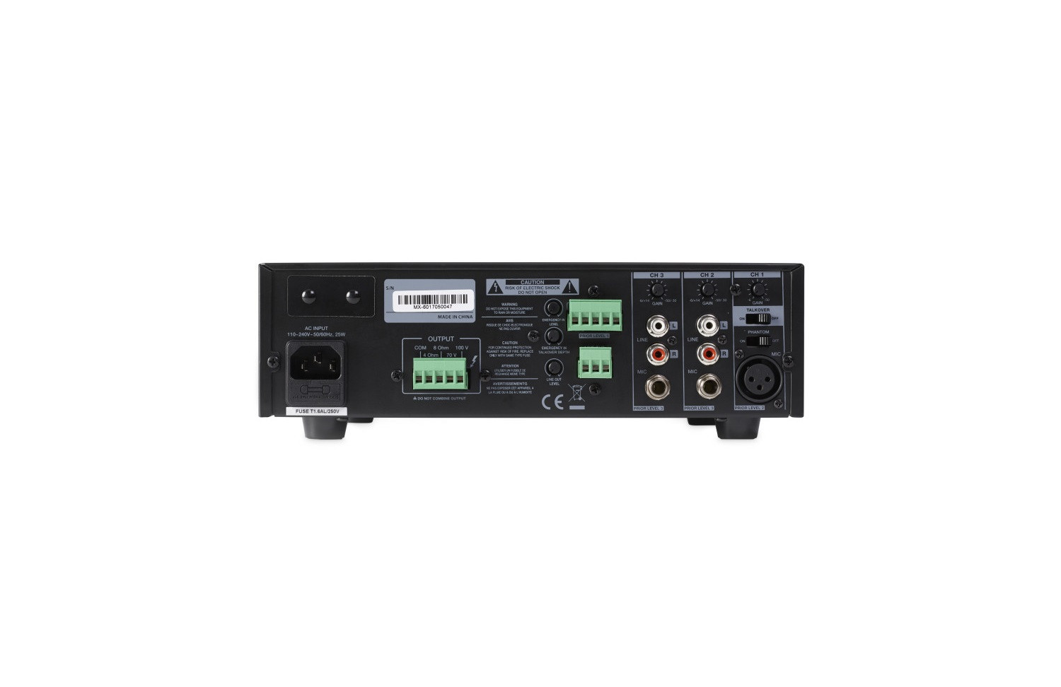 - Direct output: 4-8 Ohm / 70V / 100V