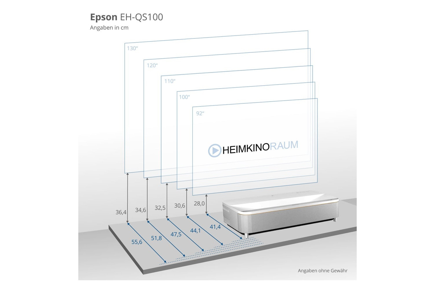 The EH-QS100W's super short-throw design projects images up to 160" with minimal space requirements, while its 0.16 projection ratio offers flexible installation in living rooms and other multimedia spaces without the need for complicated mounting or long-distance placement - perfect as a TV replacement. The super short throw projector also eliminates shadows, making it ideal for small or multi-functional spaces.