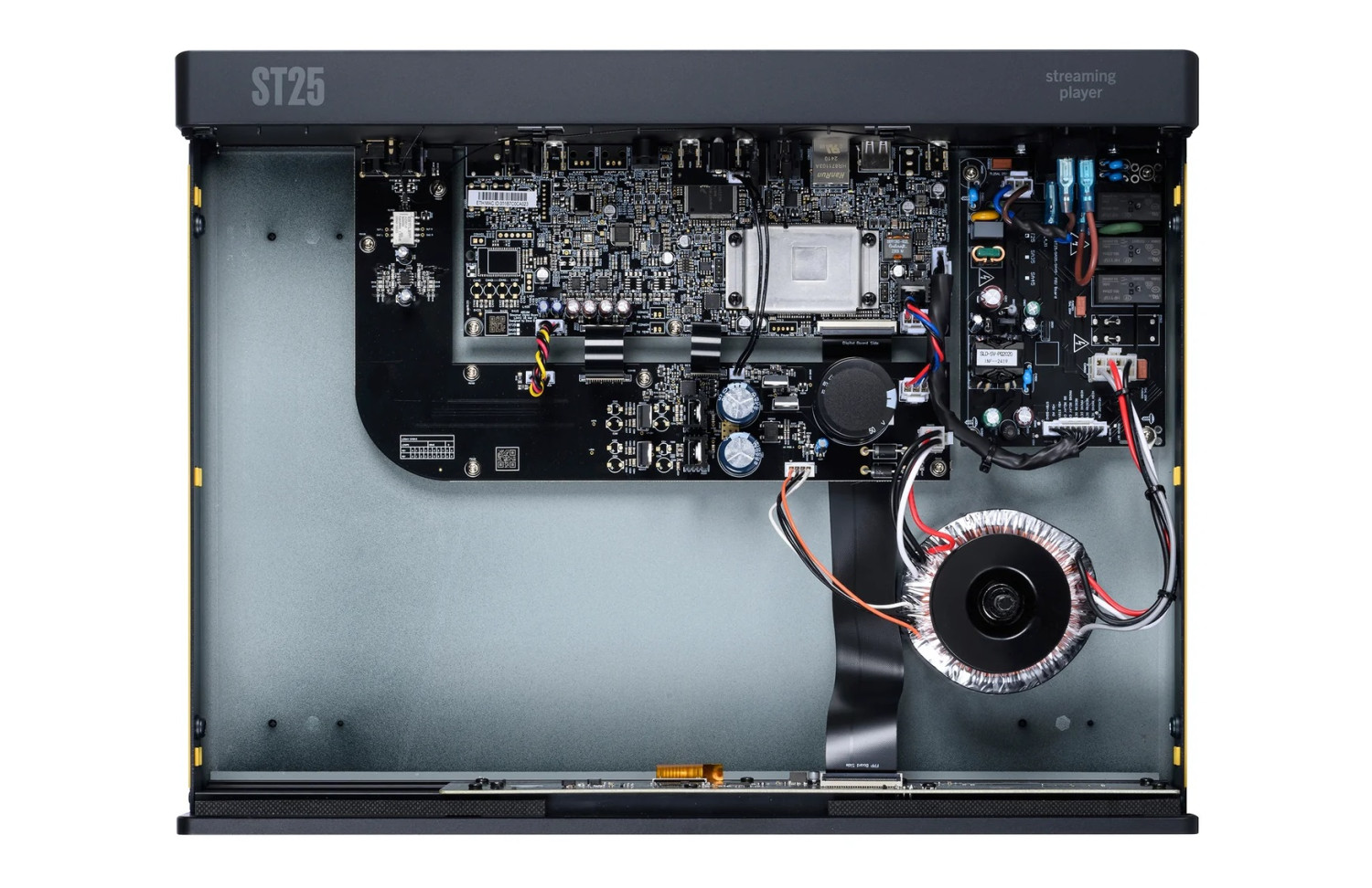 Up front, the ST25 network audio player features a new 6.5" high-resolution screen to display album art and metadata, which can be read clearly from the comfort of your favourite armchair. For playback, an included feature set is compatible with most smartphones and tablets, as well as popular streaming services.
