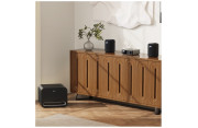 100W power delivered through a 4" woofer and dual-mode balanced radiator tweeters.